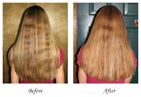 | before and after photos after getting her beautiful straight hair trimmed. |